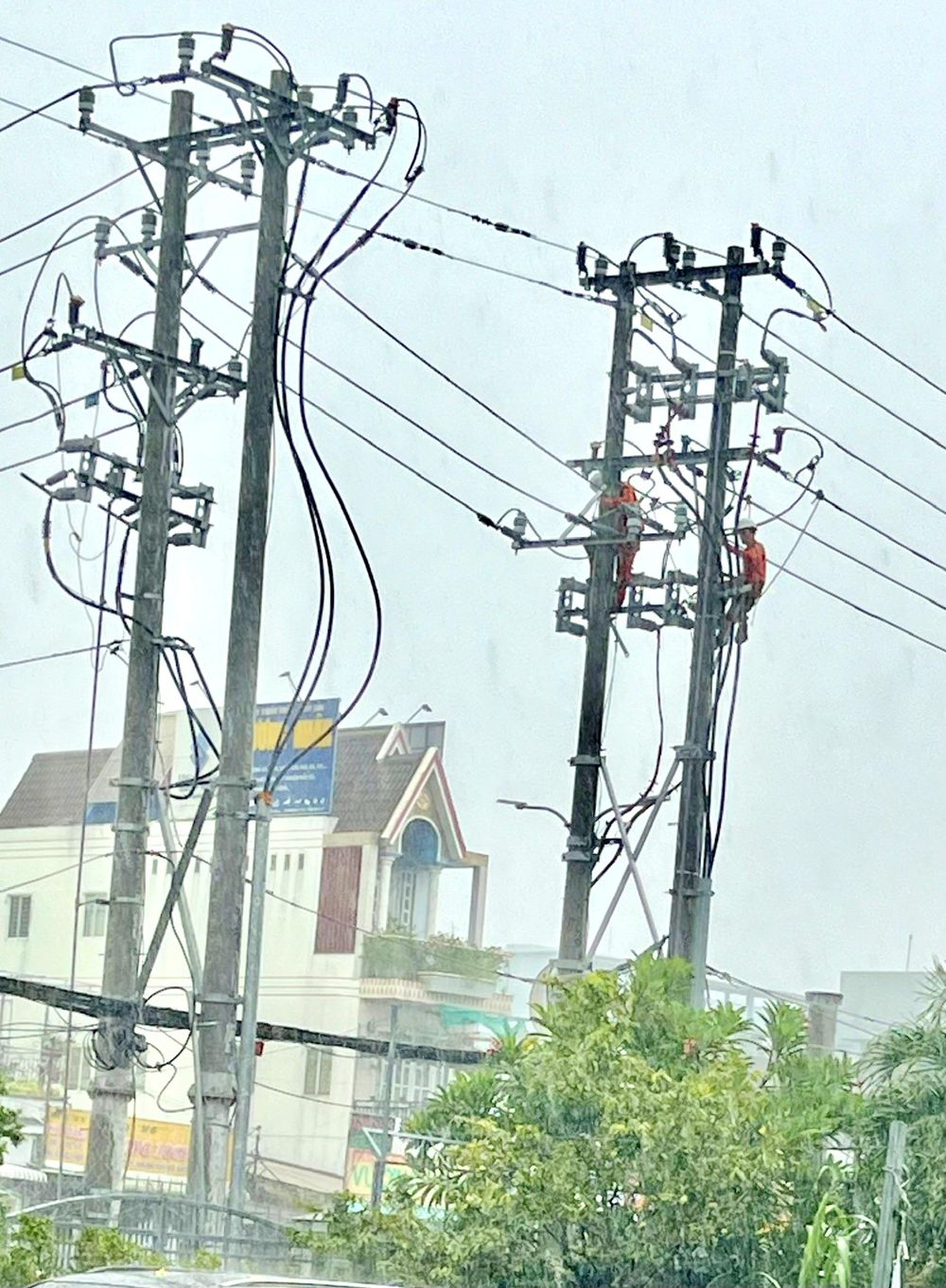Nhân viên Công ty Điện lực Tiền Giang nỗ lực khắc phục sự cố (ảnh do Công ty Điện lực Tiền Giang cung cấp).